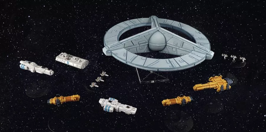 A tabletop miniatures game of intense starship combat between fleets of powerful cruisers, sleek destroyers, and agile fighters.
