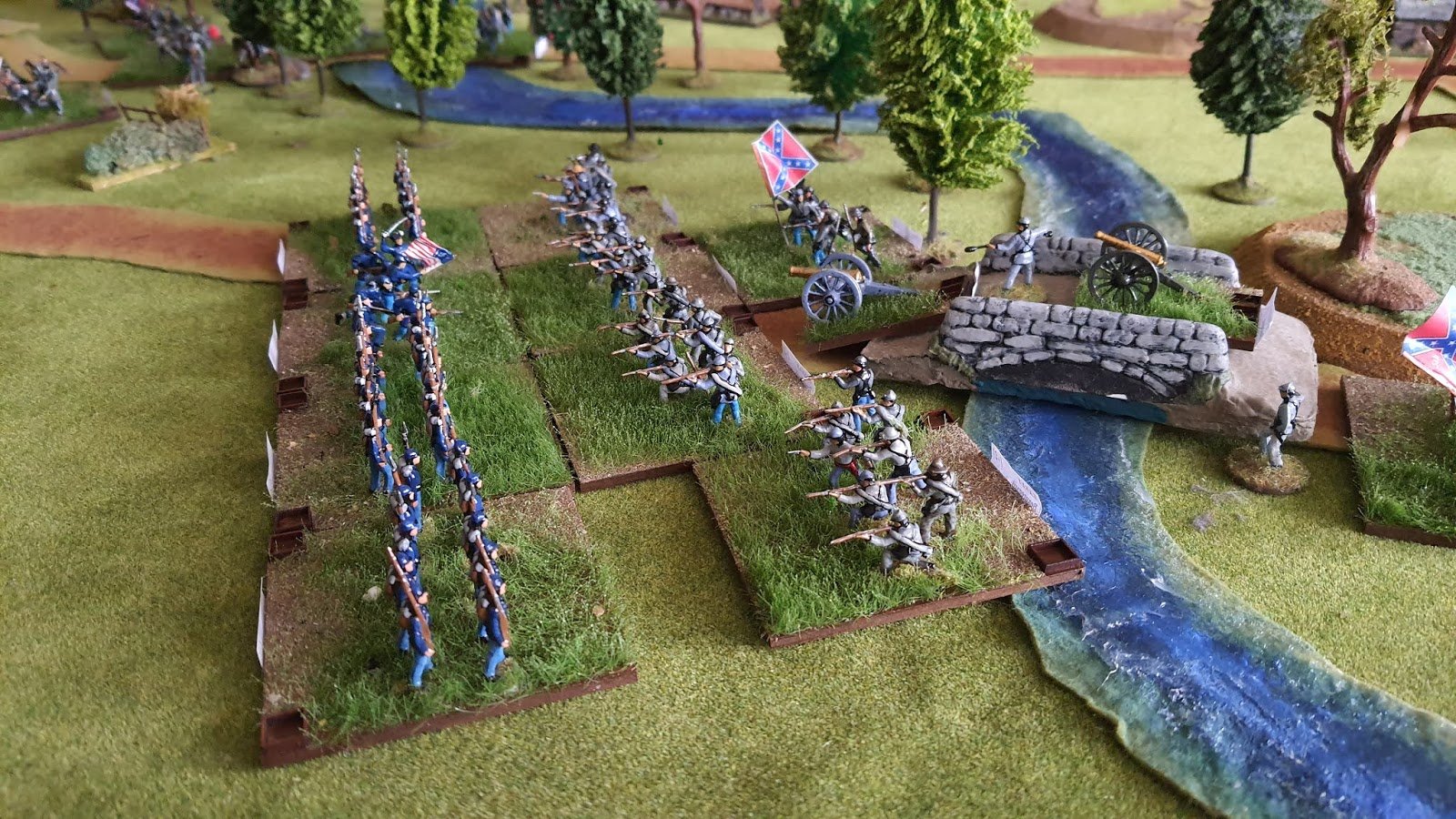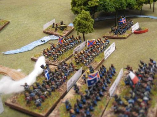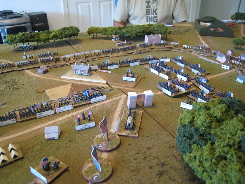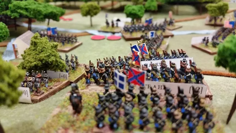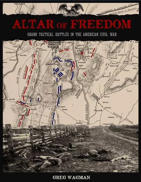 Altar of Freedom is a grand-tactical miniatures wargame system for simulating the large battles of the American Civil War, focusing on army-level command and control rather than individual units. Players take on the roles of corps or army generals to coordinate their forces, with each miniature base representing an entire brigade. The system uses a turn-based, variable-duration turn clock driven by a unique initiative bidding system where players secretly bid points to activate their divisions. The game uses 6mm or 10mm figures, features flexible basing, and includes historical scenarios to resolve major battles in a single evening.