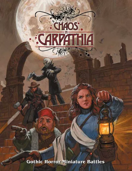 Chaos in Carpathia is a Victorian horror-themed miniatures skirmish game where players control heroes and monsters in fast-paced, small-scale battles, blending aspects of resource management with dice-based combat.