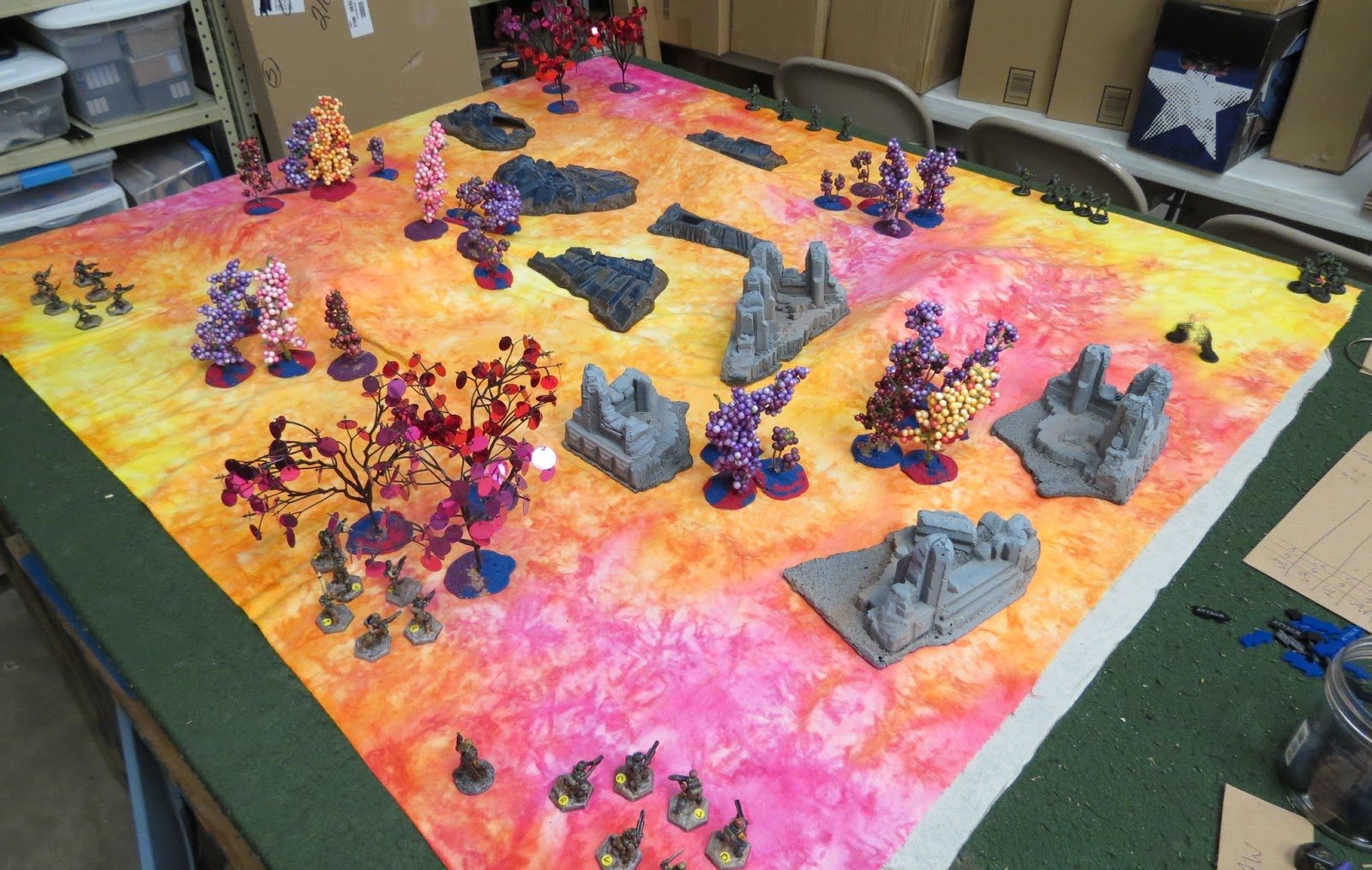 Combat is designed to be energetic and deadly, with area-of-effect weapons and mechanics that can cause units to be pinned down or demoralized, in addition to taking casualties.