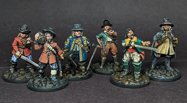 En Garde! is a small-scale skirmish game based on the successful Ronin rules, in which small groups of warriors fight each other for honour or riches. Rather than just rolling a few dice, the rules allow players to make tactical decisions about how the models that they control will fight – offensively, defensively, or by applying special skills and abilities. En Garde! covers the conflicts of the 16th, 17th and early 18th centuries, when black-powder weapons started to become common in battle but martial prowess still determined the outcome. Play as Border Reivers, Conquistadors, Landsknechts, Aztecs, French Musketeers, Caribbean Pirates and many more, in scenarios that evoke classic engagements of the genre. Simple campaign rules allow multiple scenarios to be played in sequence and permit warbands to develop over time. An appendix is also included to provide brief rules for supernatural creatures of the period – monsters, demons, revenants and witches – and new abilities and equipment to fight them, making En Garde! the perfect ruleset for gamers who want something a bit different from the norm.