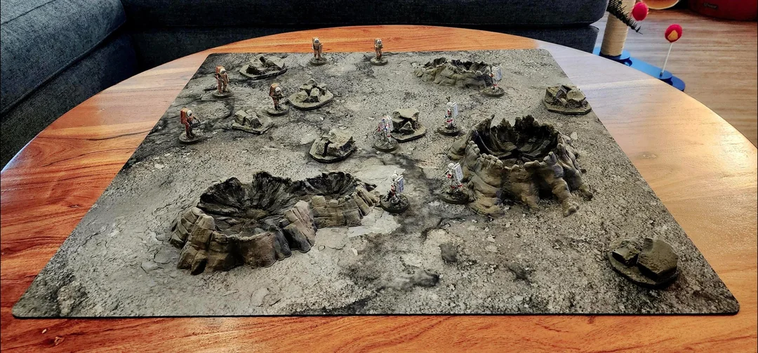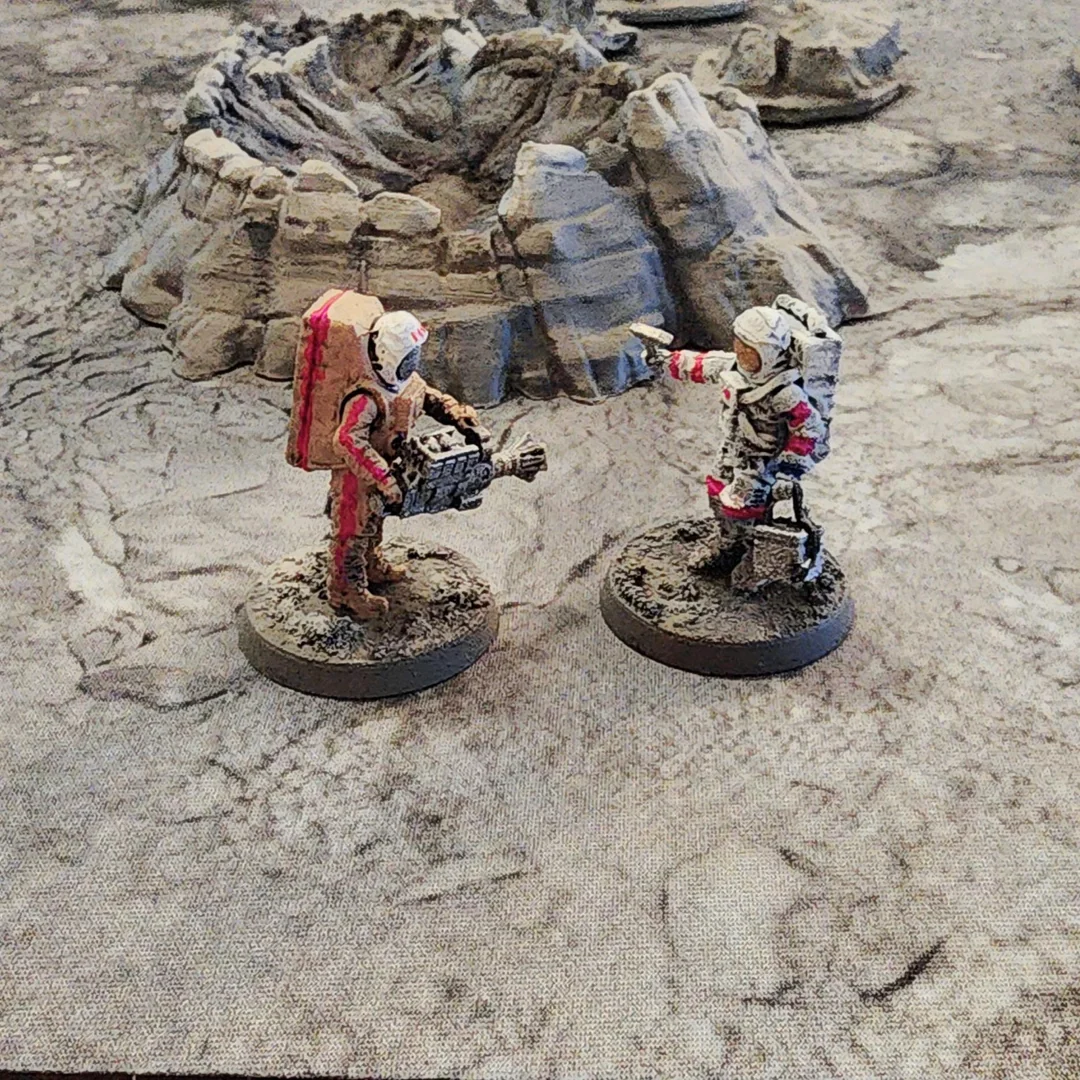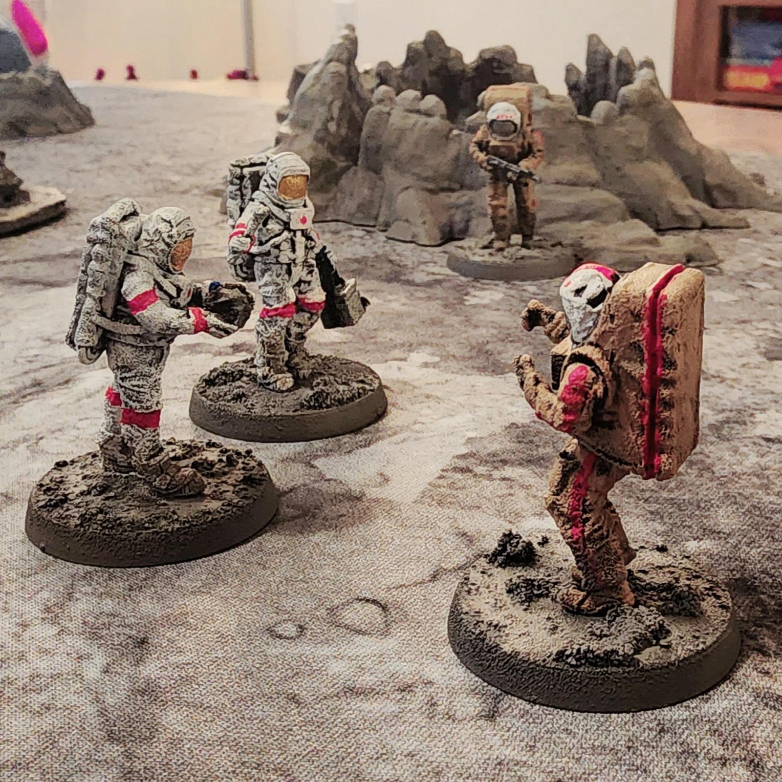 A game of Lunar is played with 3-5 miniatures per side on a 2’×2′ area. Gameplay is based on a simple D6 mechanic that makes the game easy to understand and easy to teach new players.