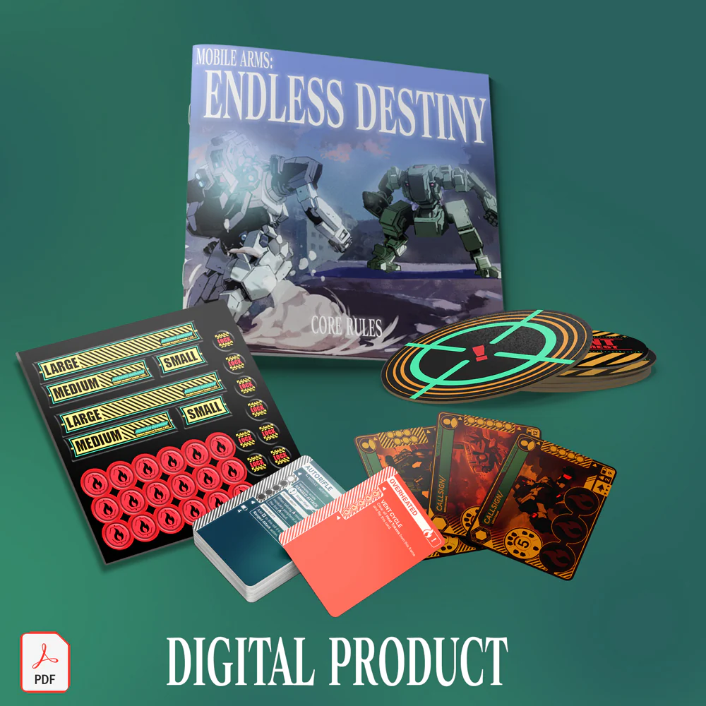 These frames are piloted by individuals from all walks of life; veterans of the Gate Conflict, professional soldiers, greenhorns looking for a massive payday, and anything in between. Each pilot has a trusty copilot in the form of a Braintape, a cassette-bound AI essential to the function of Frametech. A standard game of Mobile Arms, called a Sortie, depicts a clash between two of these Frametech merc groups vying for battlefield contracts across many different worlds.
