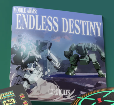 Mobile Arms is a fast-paced 28mm-32mm scale skirmish game for 2 or more players featuring quick, accessible mecha mayhem.