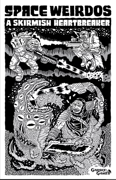 Space Weirdos is a fast-paced, miniature-agnostic sci-fi skirmish wargame designed for small, 4-10 model warbands, focusing on high-action, alternating activations, and dice-based mechanics. It uses RPG dice (d4-d12) for stats, 5-inch sticks for movement, and plays on small 2’x2′ or 3’x3′ boards. The rules are accessible, focusing on “go wild, go weird” customization with low entry costs.