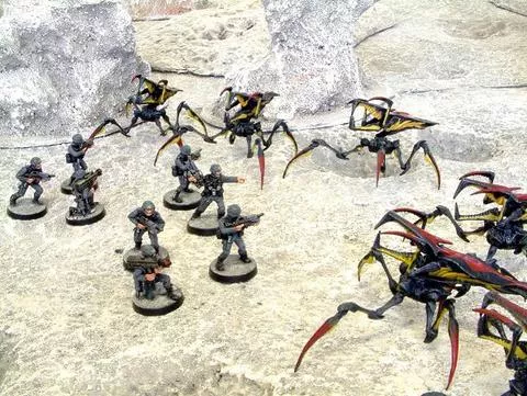 Starship Troopers: The Miniatures Game is a fast-paced wargame focusing on tactical combat between the Mobile Infantry, Arachnid bugs, and Skinnies. Gameplay highlights include orbital capsule drops, bug tunneling, and a reactive system.