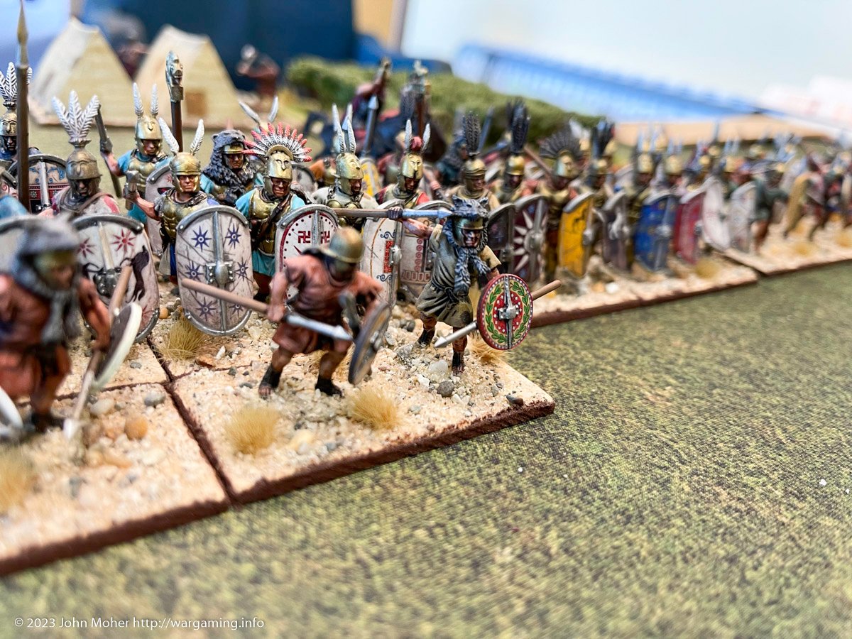 The rulebook provides the mechanics for resolving combat with a dice-based system, includes army lists for Roman legions and their opponents such as Gauls, Carthaginians, and Greeks, and offers campaign scenarios to reenact conflicts like Hannibal’s defeat at Lake Trasimene and Caesar’s victory at Alesia. The rules are suitable for miniatures of various sizes and allow players to either command Roman forces or resist their expansion.