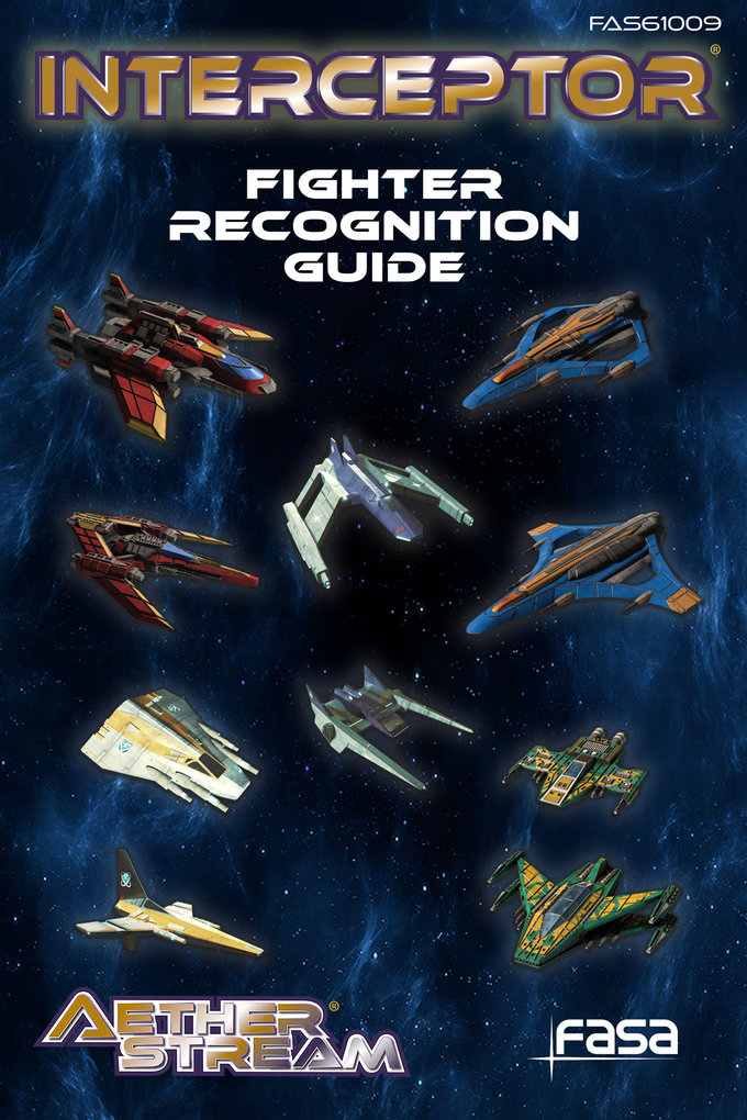 Aetherstream is FASA Games universe of science fiction games. Interceptor was the first introduced and features fighter versus fighter space combat. Each of Aetherstream’s five factions has been provides a mix of 10 fighters. The Interceptor Campaign Supplement provided additional rules as well as a system to track experience for your pilots and squadrons while providing a way to generate campaigns and missions.